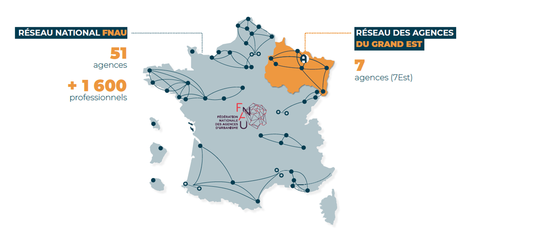 L'AGURAM est membre de la Fédération Nationale des Agences d'Urbanisme (FNAU), un réseau de plus de 1 600 professionnels qui partagent leurs expertises au sein de clubs thématiques. L’agence fait également partie du réseau des 7 agences Grand Est. Ce travail en réseau permet un échange de bonnes pratiques, un élargissement régulier des compétences et une veille nationale efficace.