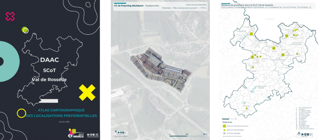 L’agence a apporté son assistance technique tout au long de l’élaboration de ce Daac, souhaité et porté par les élus du territoire. L’AGURAM a fédéré les acteurs autour d’un diagnostic partagé du tissu commercial local, mené avec la CCI 57, la CMA 57 et les partenaires transfrontaliers (ville et métropole de Sarrebruck, IHK et l’Eurodistrict SaarMoselle). À partir d’enjeux mis en lumière, une stratégie commune a été co-construite lors d’ateliers avec les intercommunalités.